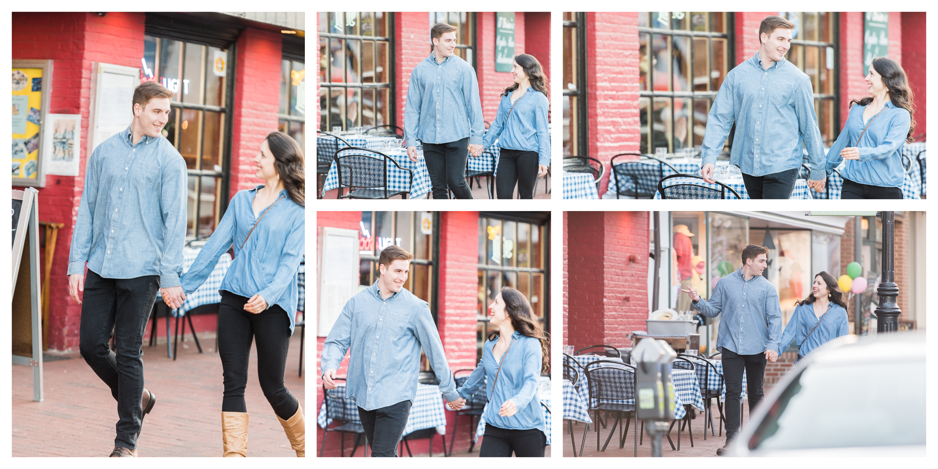 Allie and Daniel met at University of Maryland for their undergrads before continuing on to pursuing graduate degrees and career tracks that keep them in Maryland! Their first choice for an engagement photo session was at Old Town Alexandria, but the weather threw a curve ball and we ended strolling the alleyways of downtown Annapolis to find the perfect lighting and backdrops. We had so much fun, I am convinced their wedding in the Fall 2019 at The Golf Resort at South River will be a blast! I can’t wait!