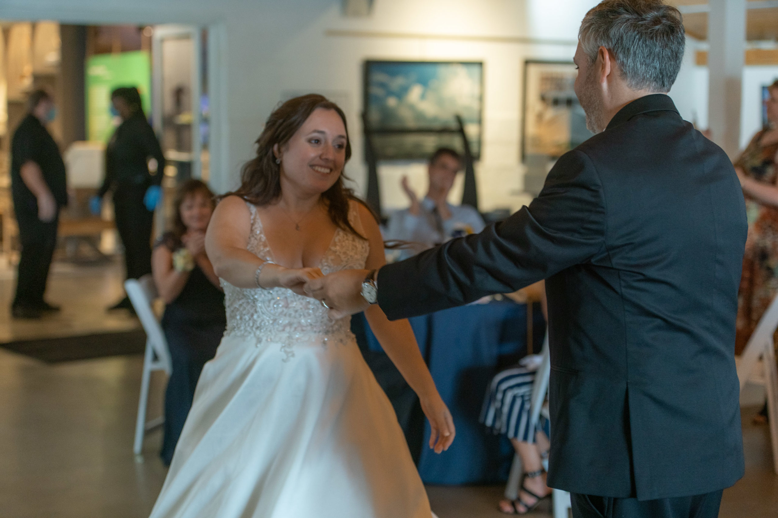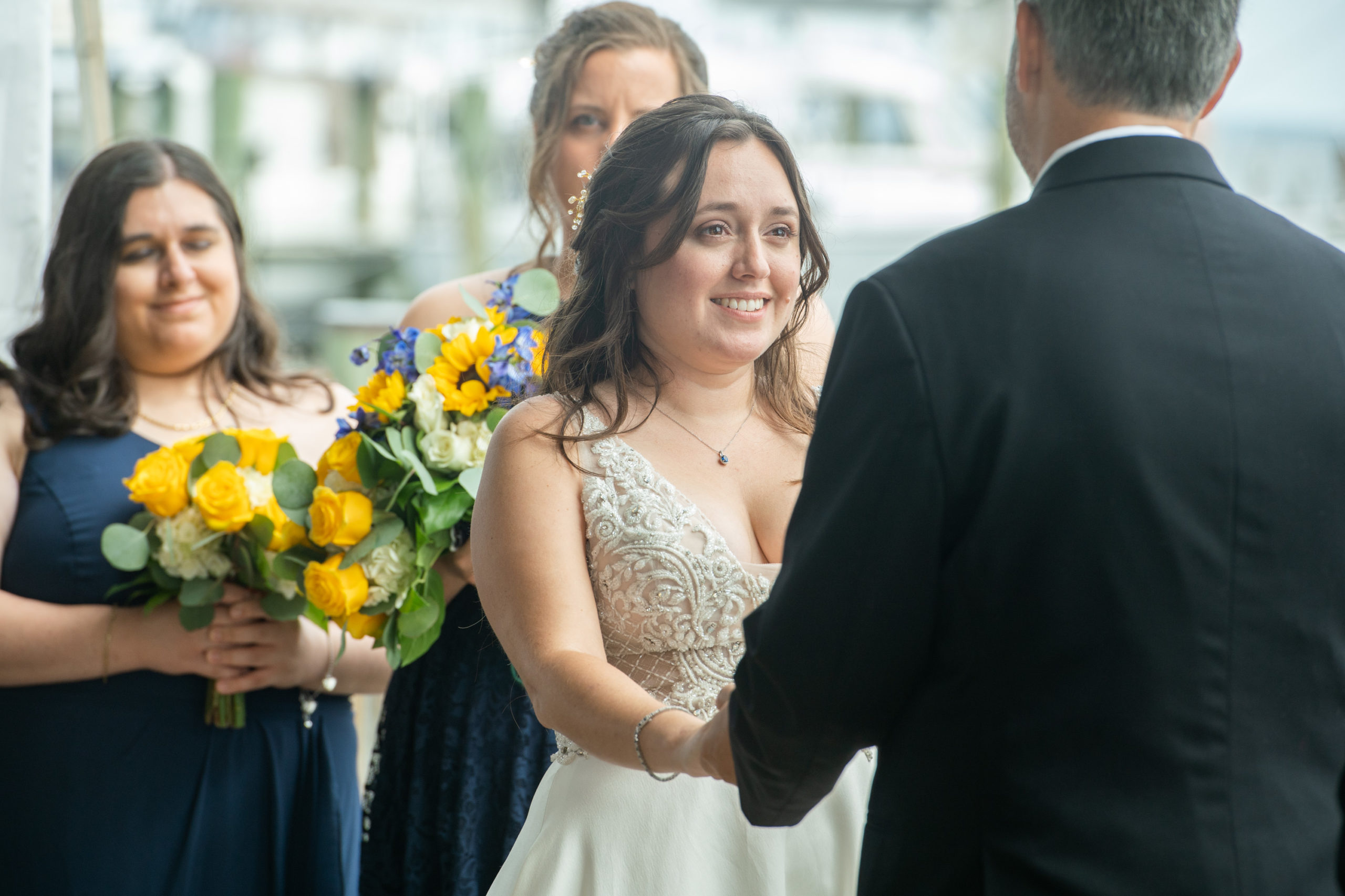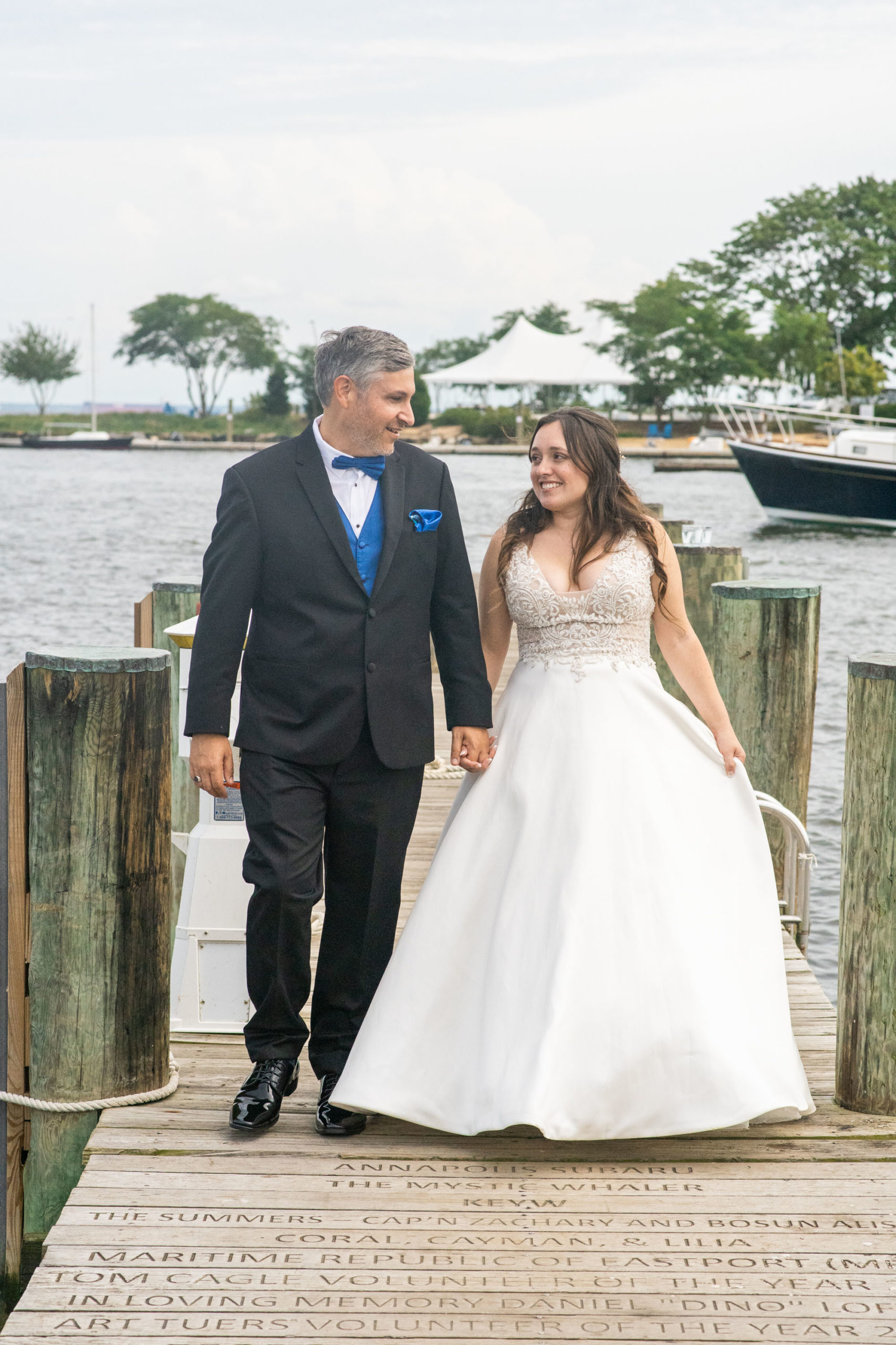 After what must have seemed like an eternity, the wedding of Natalie and Shawn finally took place last night at the Annapolis Maritime Museum. Between 2 wedding dates and 3 changes to their venue location (meaning they actually planned 4 different locations), their wedding went off without a hitch. As is commonplace these days, some of their friends and family were unable to come because of virus restrictions, health, and so forth, but even they participated virtually via livestream (which Trans4mation Photography was glad to provide)!