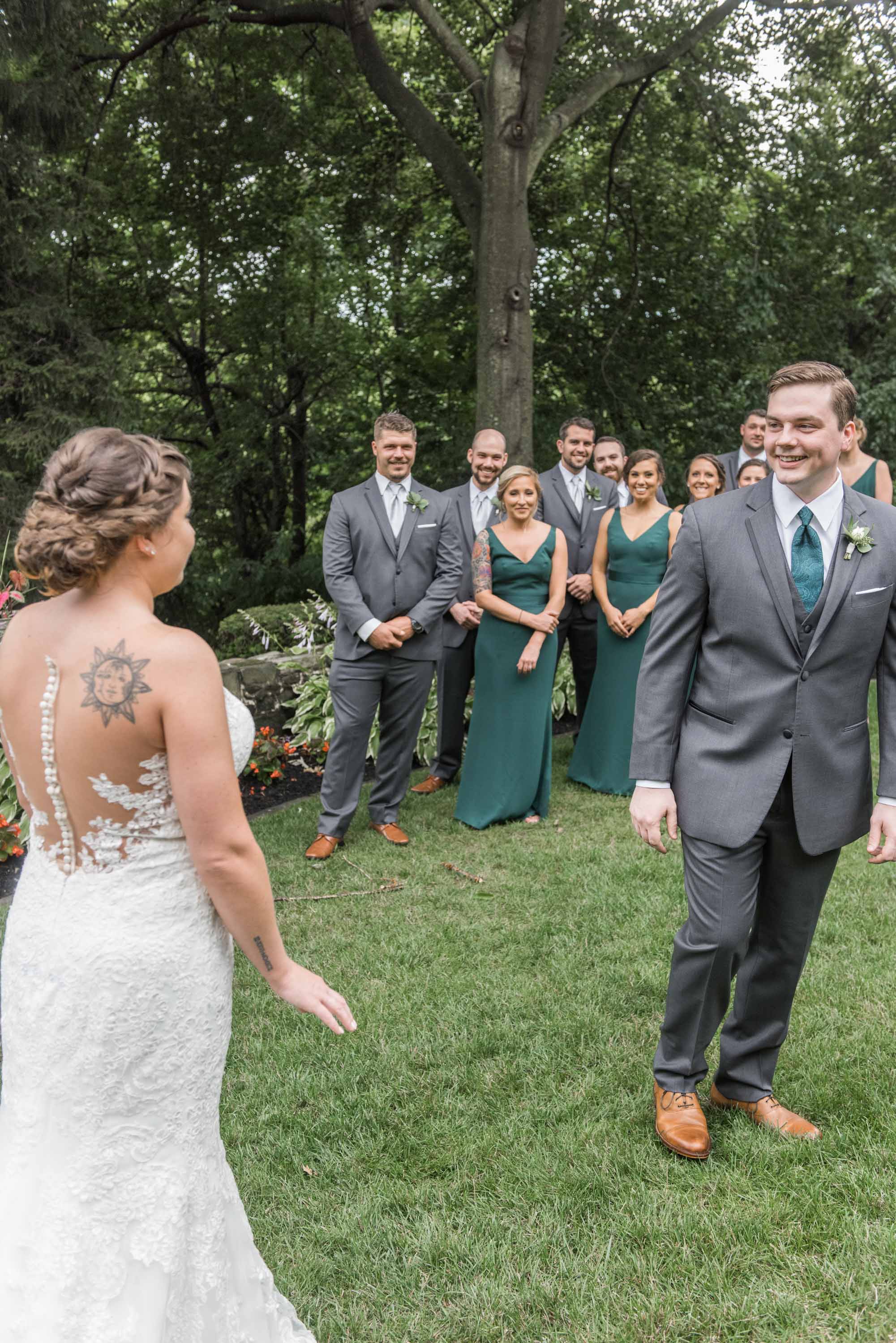 In 1782, Harford County voted to move the county seat to Scott’s Old Fields (present day Bel Air). Through a series of sales and purchases, the land was eventually sold to Charles and Adele McComas in 1920. The McComas’ built the lovely manor house which graces the property at the present time. Passing through other hands, Harford County purchased 46 acres of the 55-acre tract of land in 1991, and in 1993, the County deeded the land to the Town of Bel Air for use as a community park. Almost immediately, the Town developed a master plan for the property and began to develop it as a community park including gardens, trails, nature areas, a creative playground and three active recreation fields. In 1996, the Town purchased additional acres including the house and outbuildings, and created the Rockfield Foundation to oversee the use of the House and property, now known as Rockfield Manor. It was this historic and beautiful property that graced the visual aesthetic of Abby and Josh’s wedding who asked me and Ursula (Trans4mation Photography – your Annapolis Wedding Photographer) to capture their nuptials in photographs.