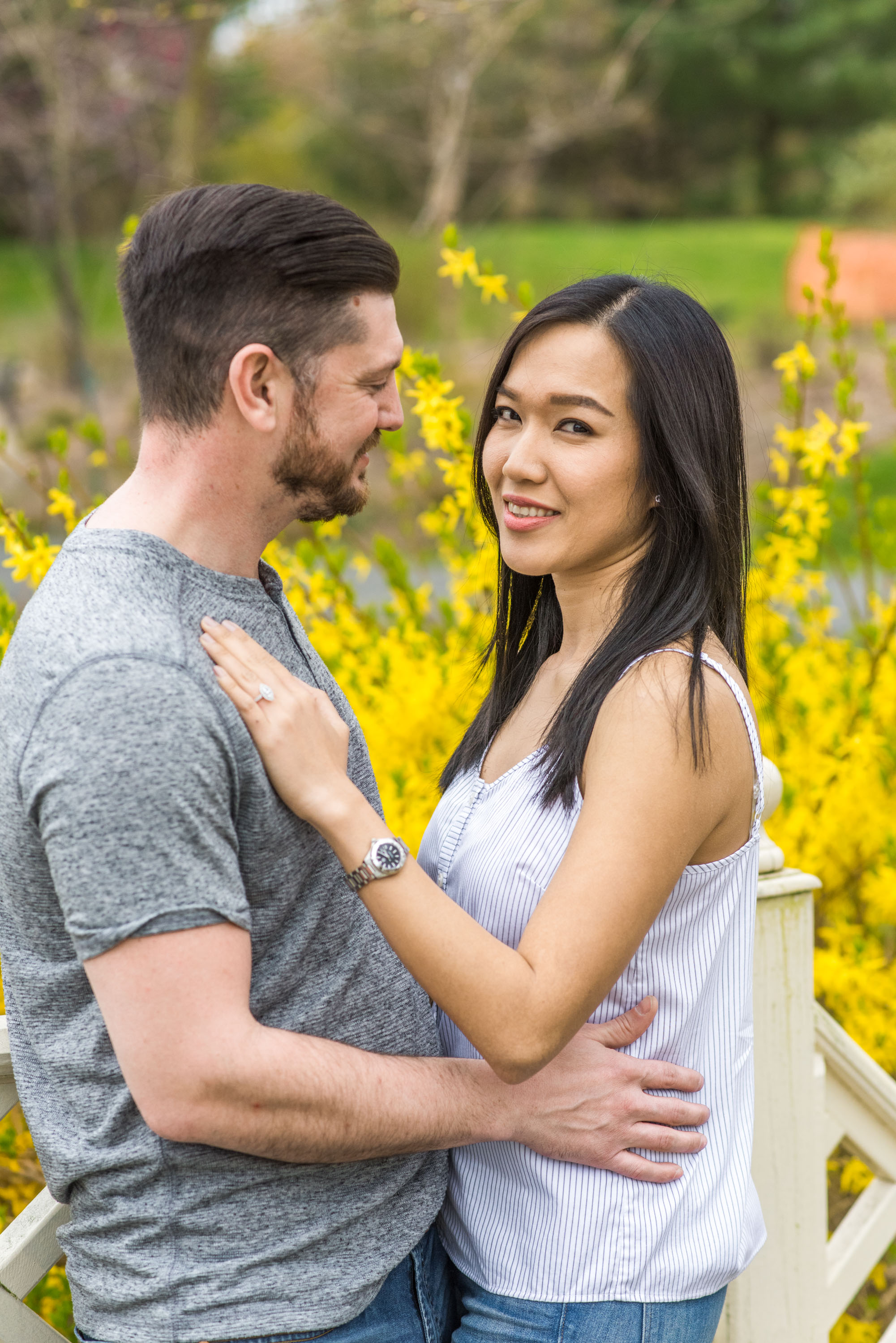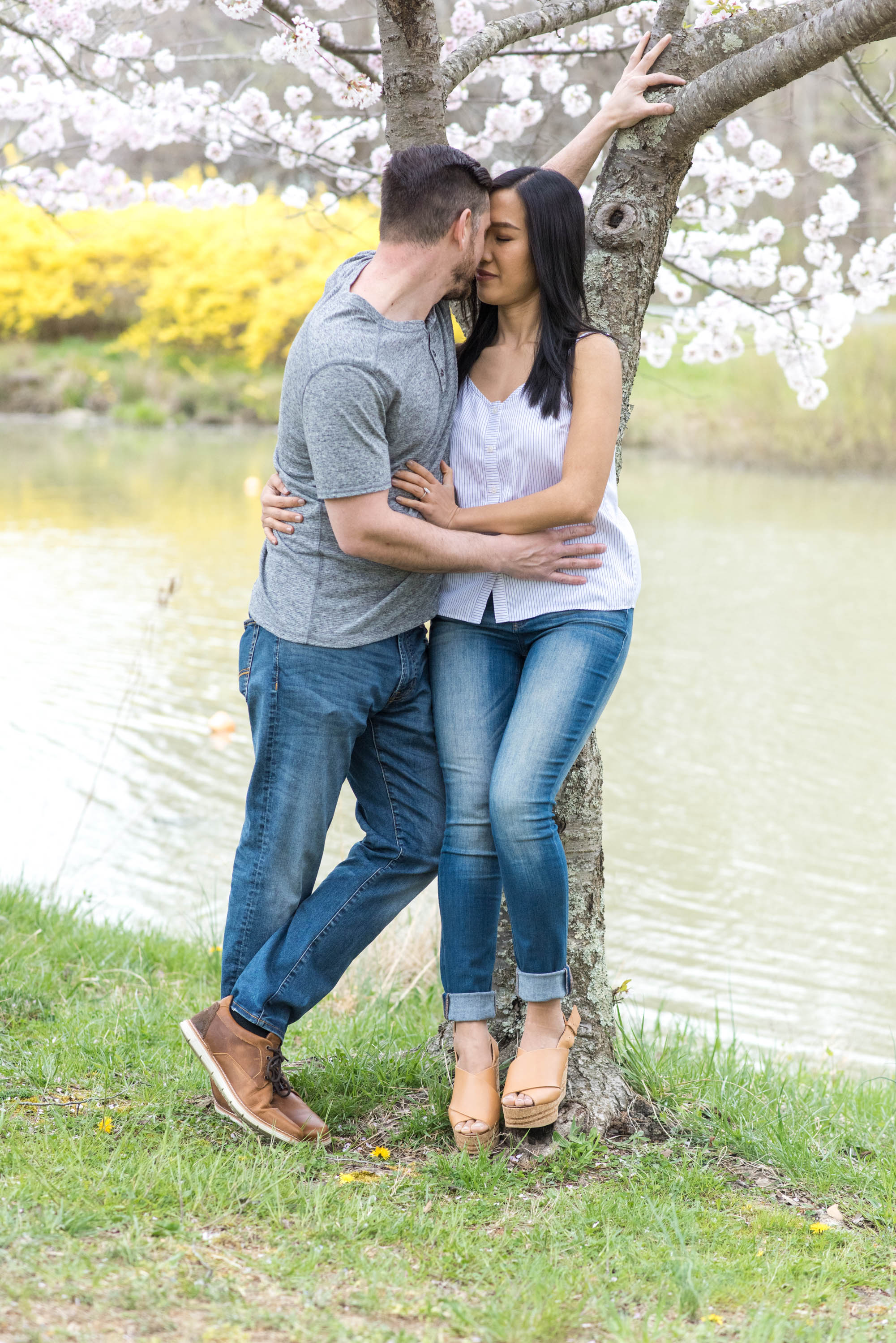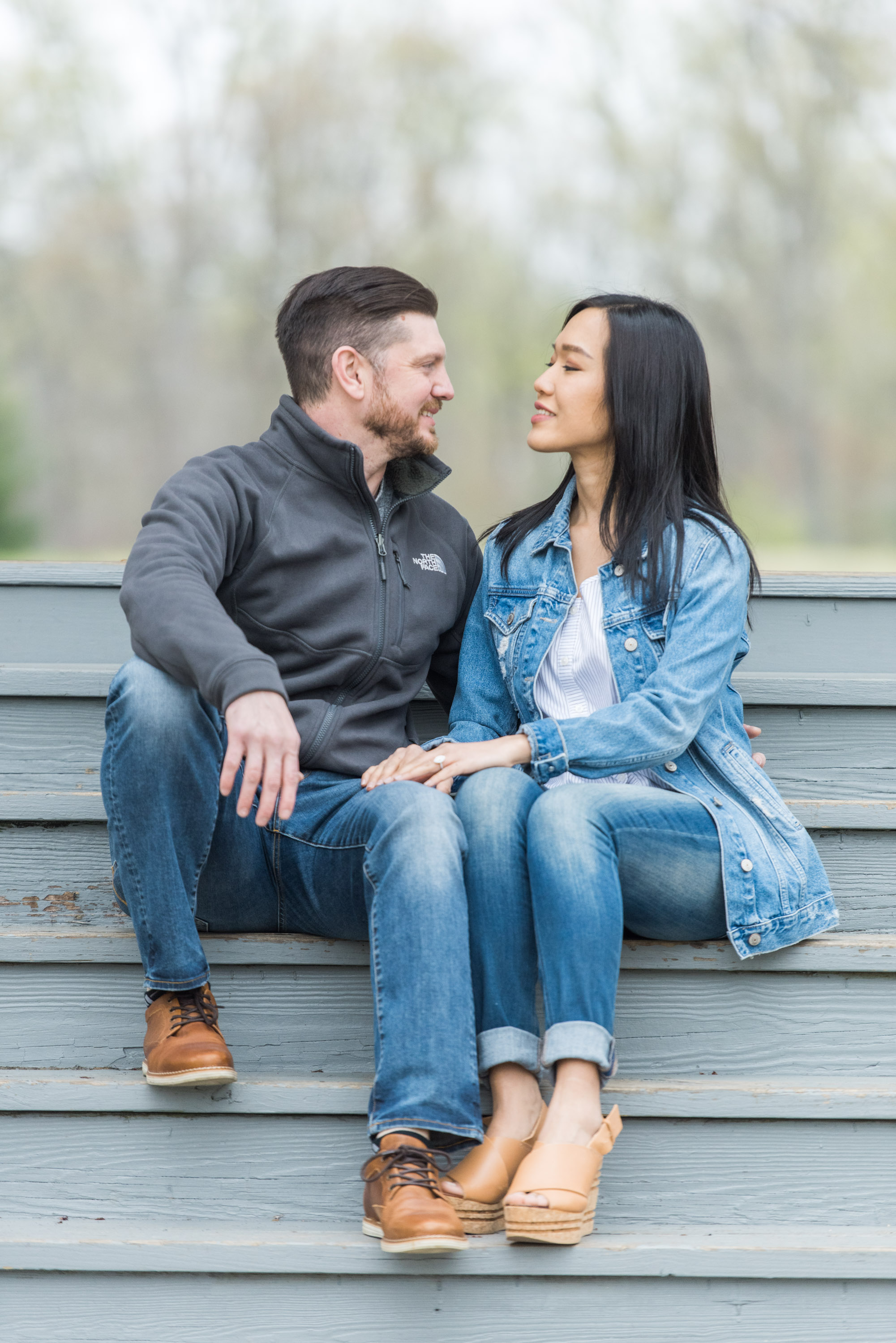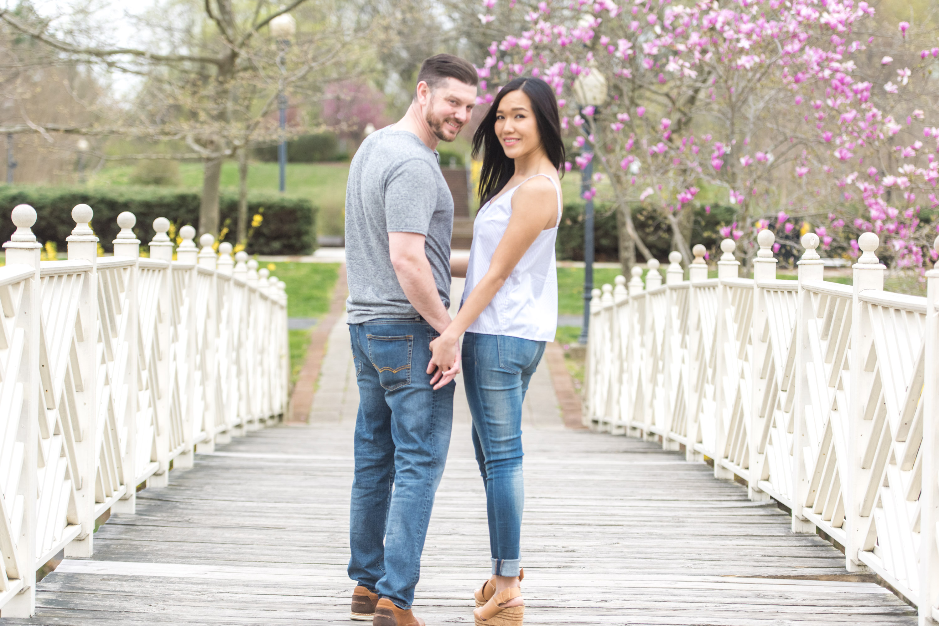Most of my clients ask me to create a “light and airy” feel for their engagement and wedding photos. Most often, it is fairly easy to do, especially when we have sunny or mostly cloudy weather. Once in a while, the weather is extremely cloudy for the planned session. My clients, like Katie and Ryan, have the option to reschedule the sessions (I try my best to accommodate my clients!), or have the session anyway. This was the case with Katie and Ryan at their engagement photo session in Quiet Waters Park in Annapolis, Maryland. But have no fear! I am always able to give the darker natural light raw images a punch with brightness in post-production!