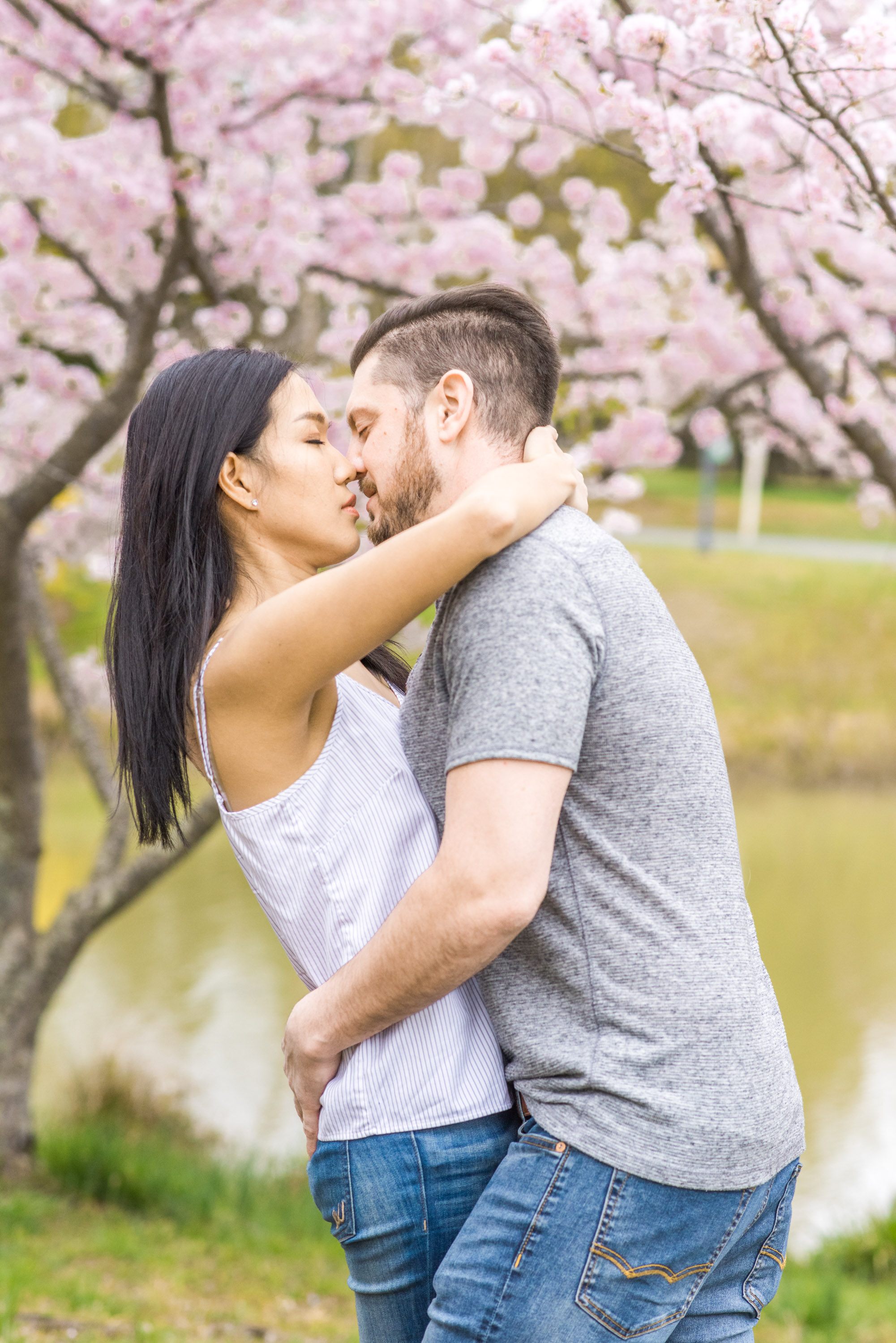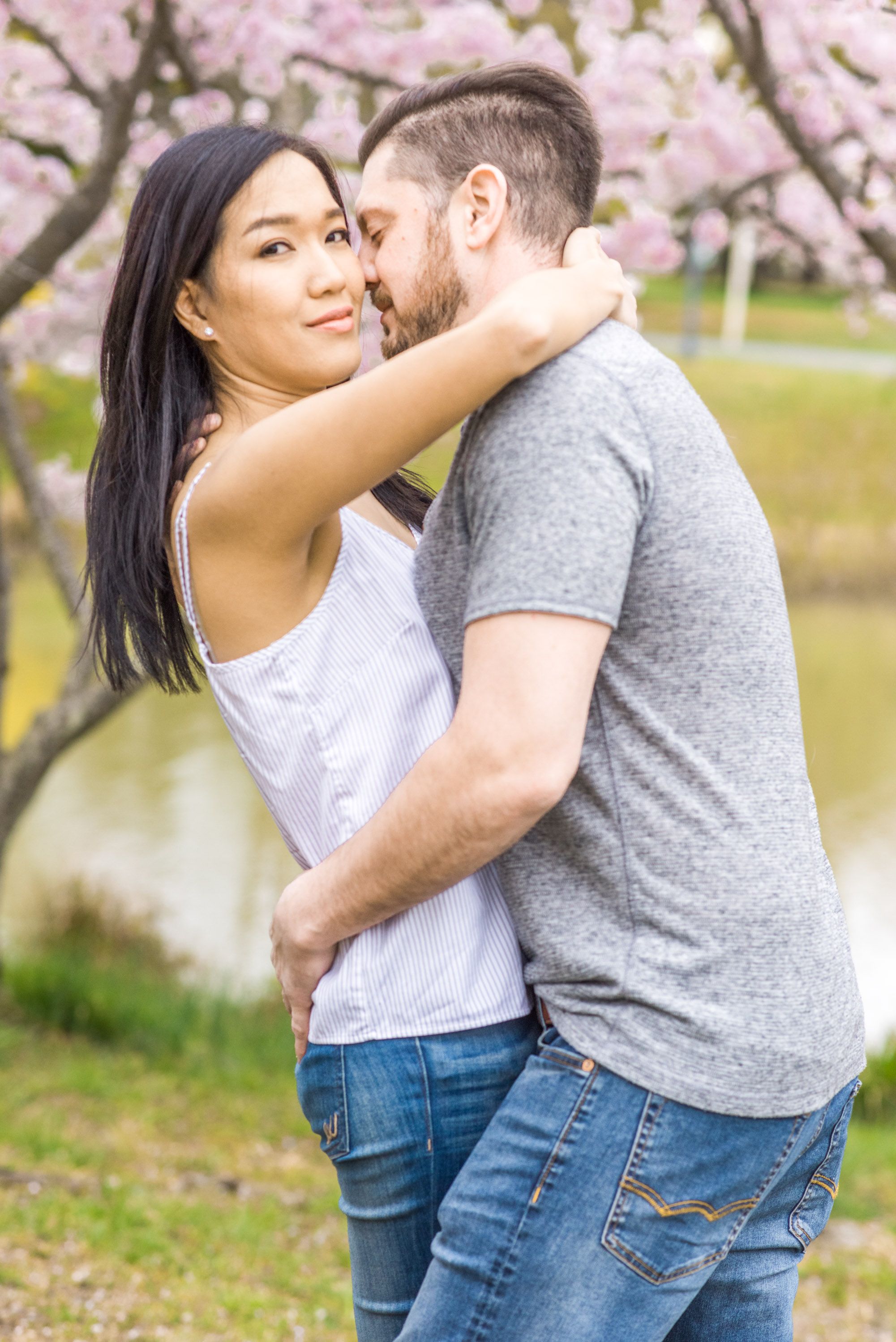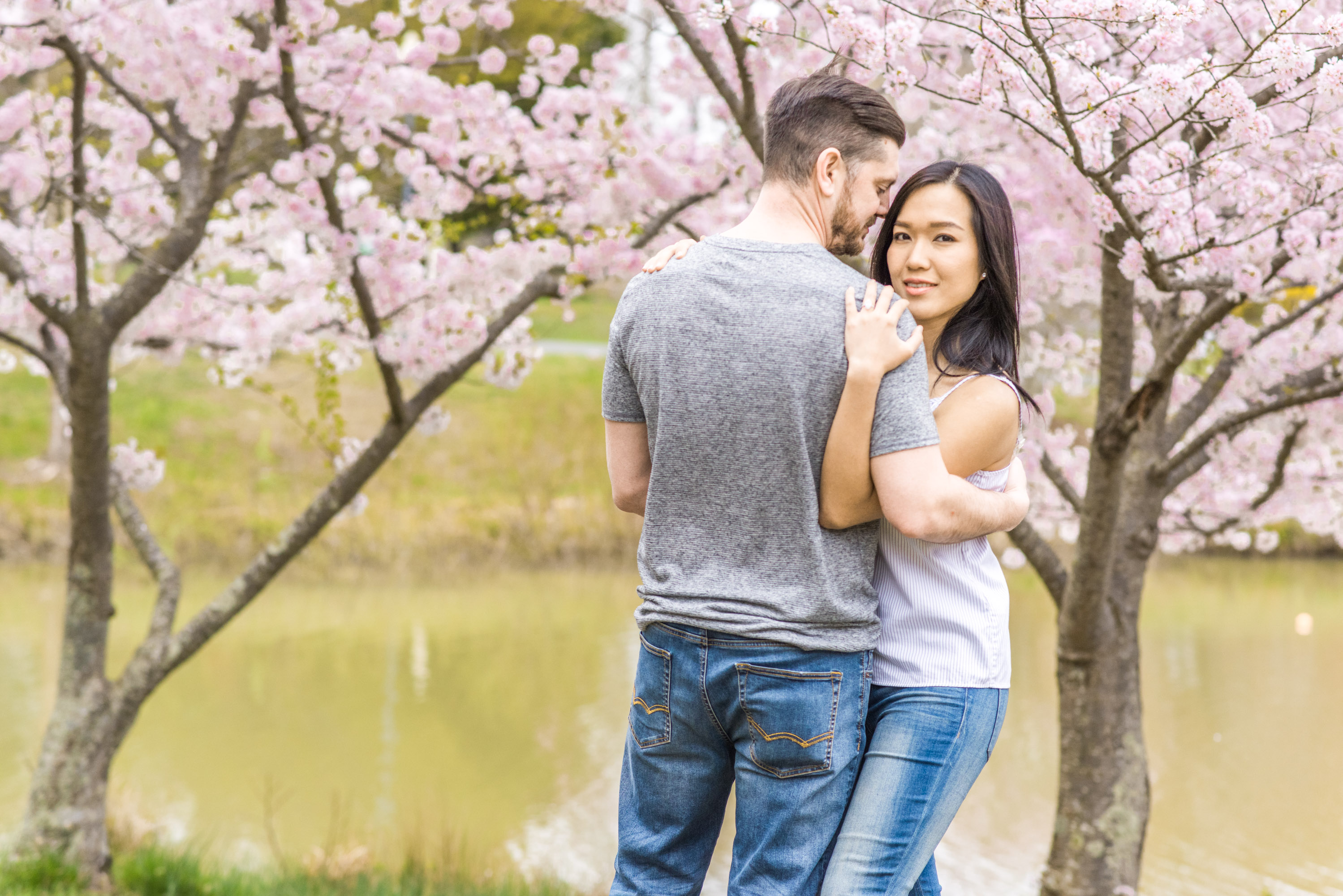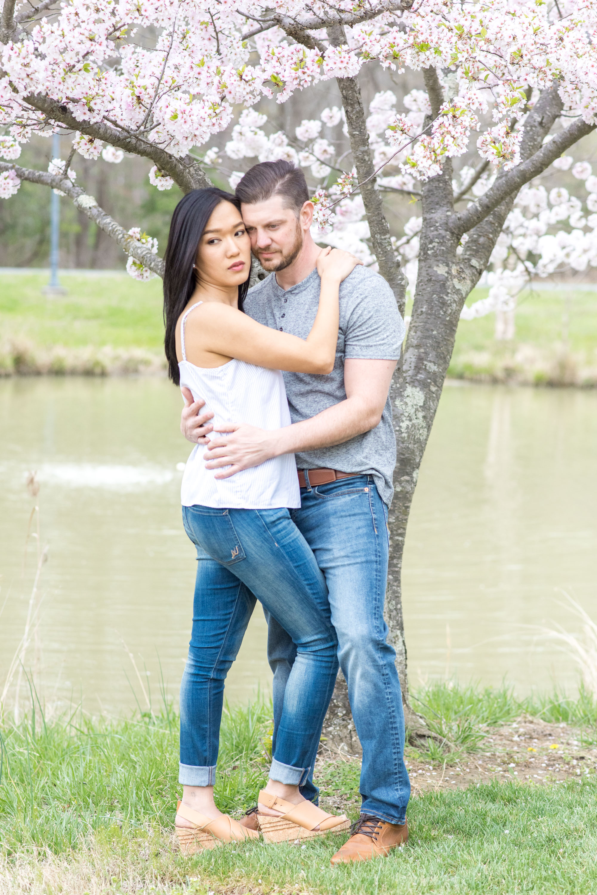 Most of my clients ask me to create a “light and airy” feel for their engagement and wedding photos. Most often, it is fairly easy to do, especially when we have sunny or mostly cloudy weather. Once in a while, the weather is extremely cloudy for the planned session. My clients, like Katie and Ryan, have the option to reschedule the sessions (I try my best to accommodate my clients!), or have the session anyway. This was the case with Katie and Ryan at their engagement photo session in Quiet Waters Park in Annapolis, Maryland. But have no fear! I am always able to give the darker natural light raw images a punch with brightness in post-production!