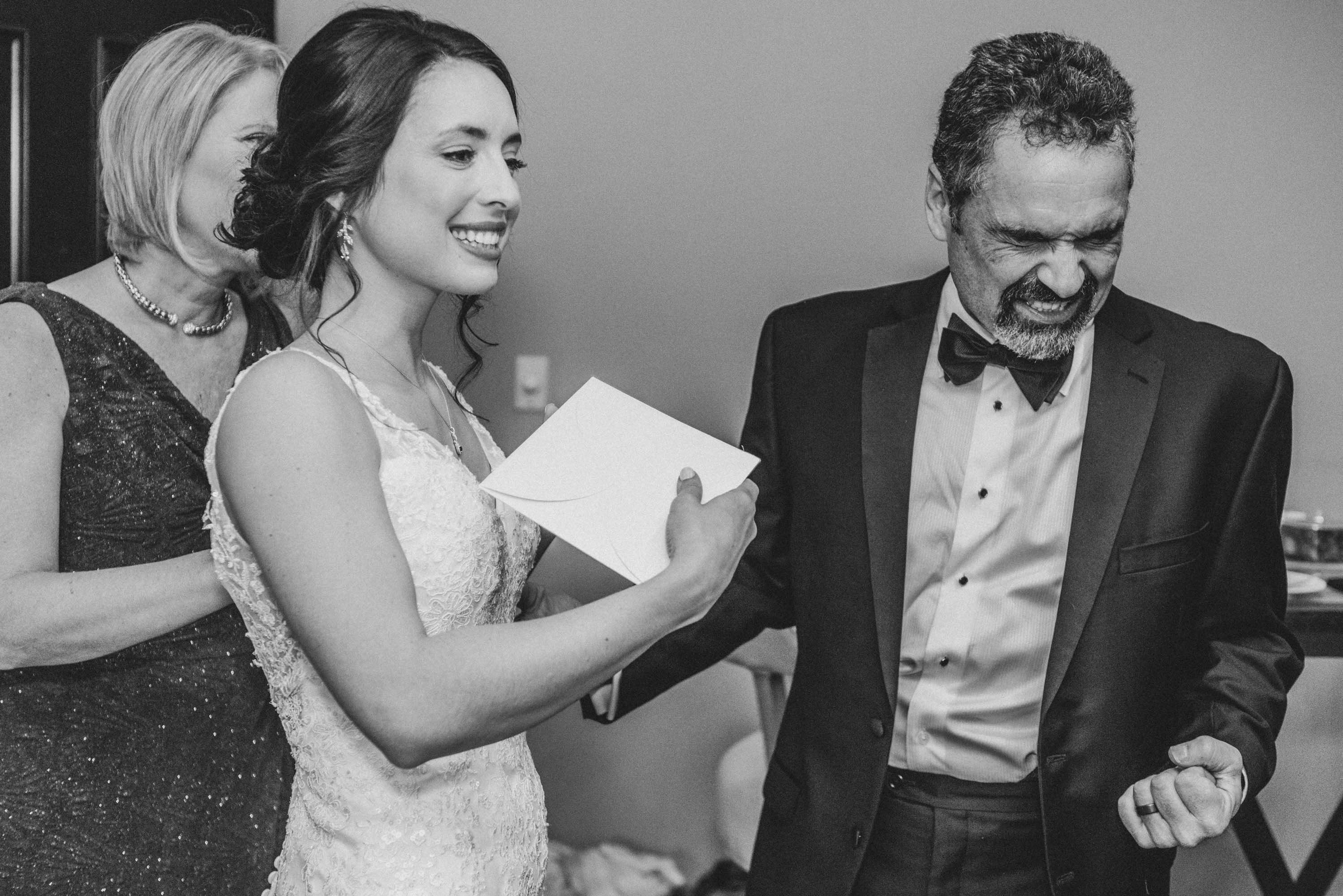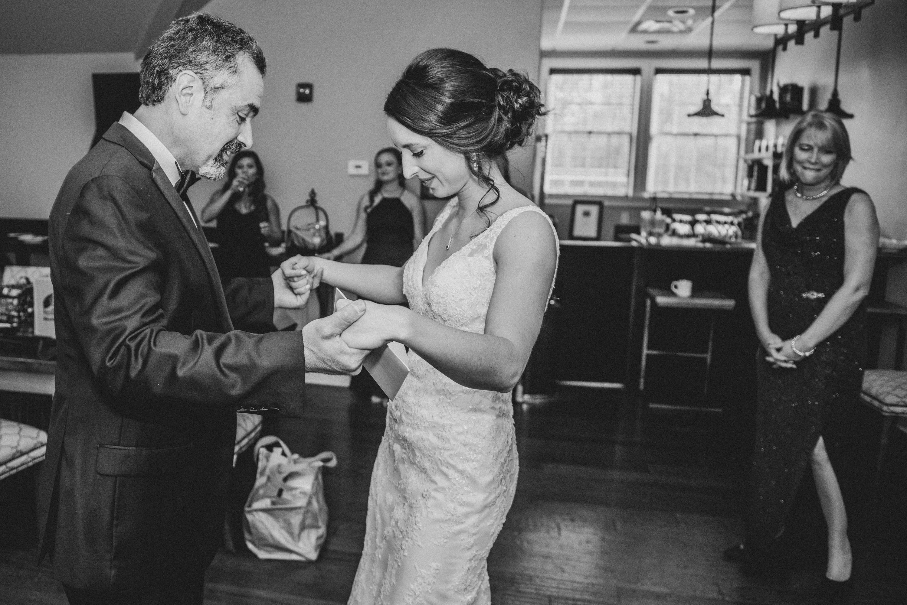 I should point out that Allie’s father, Andrew, was one of the sweetest Father’s-of-the-Bride I’ve seen in a long time. Despite being a man’s man, his unapologetic affection for his daughters is unambiguous. So much so, that despite our plans to have Allie and her dad enjoy an orchestrated “reveal”, Andrew couldn’t wait, and abruptly entered the bridal suite to lay his eyes on the joy of his life. With a smile beaming broadly from ear to ear, he couldn’t restrain himself from the joy he felt and pumped his fist with pride. These moments remind me of why I love my job – to have an opportunity to witness a private moment that is superlatively beautiful.