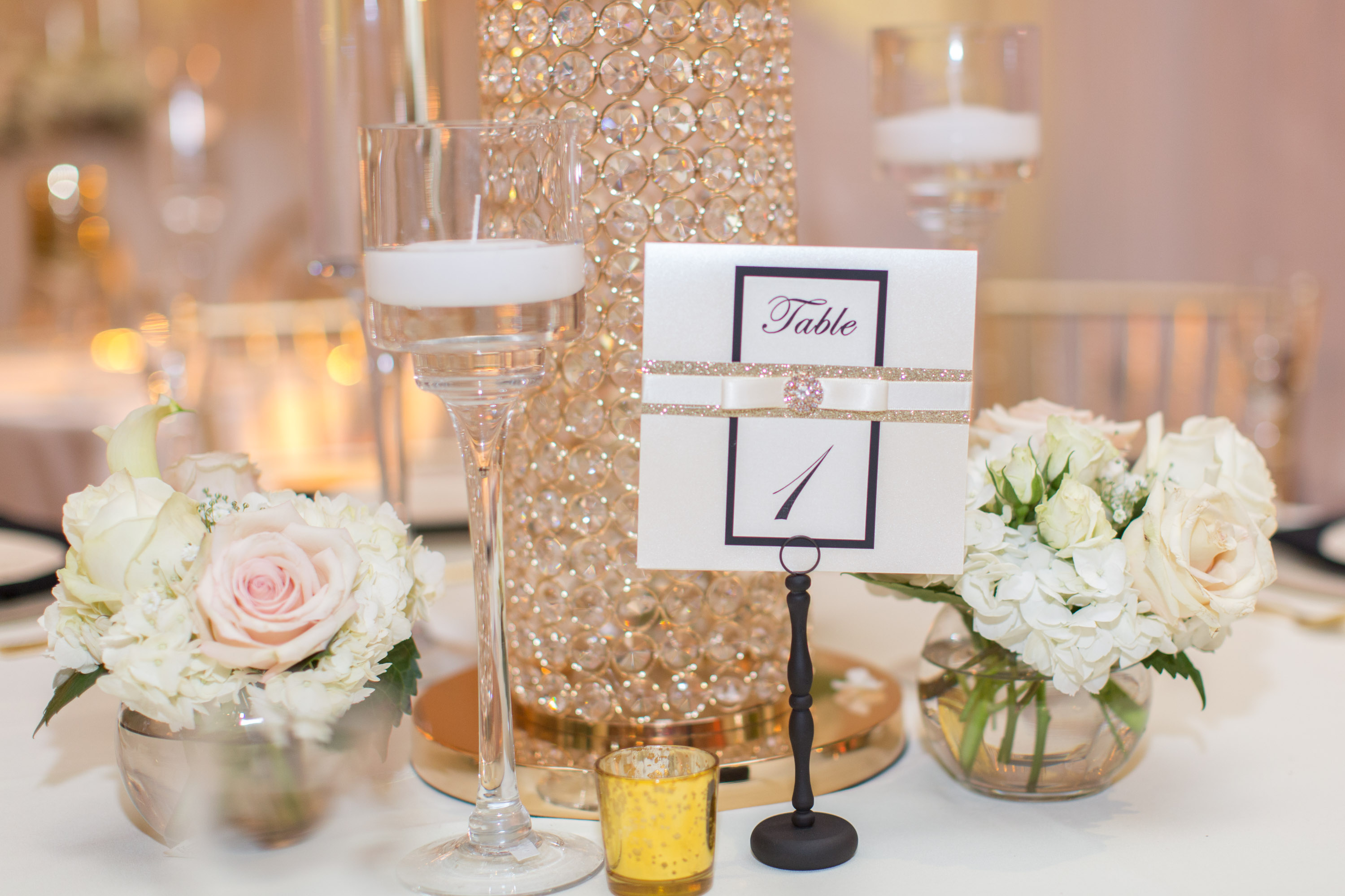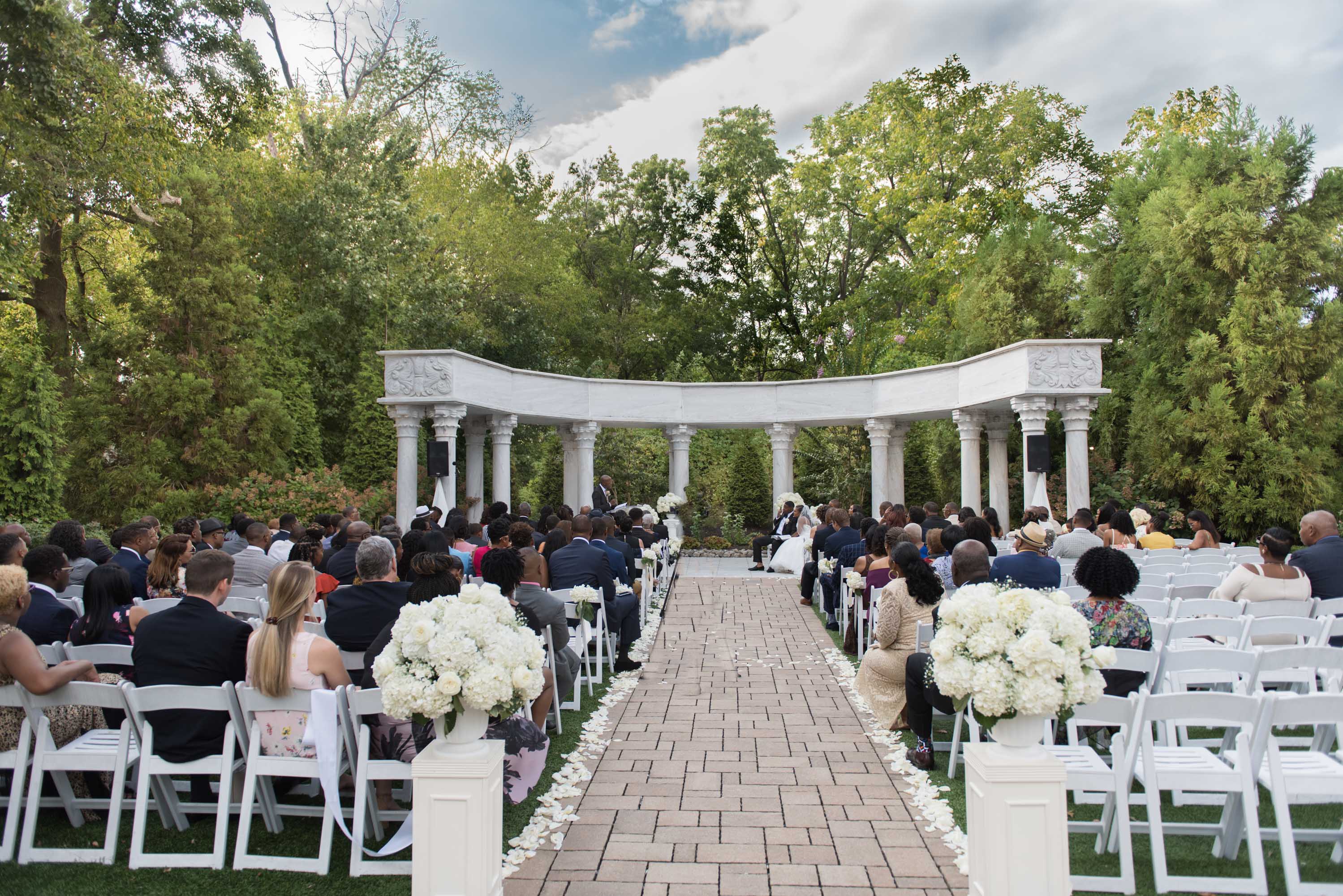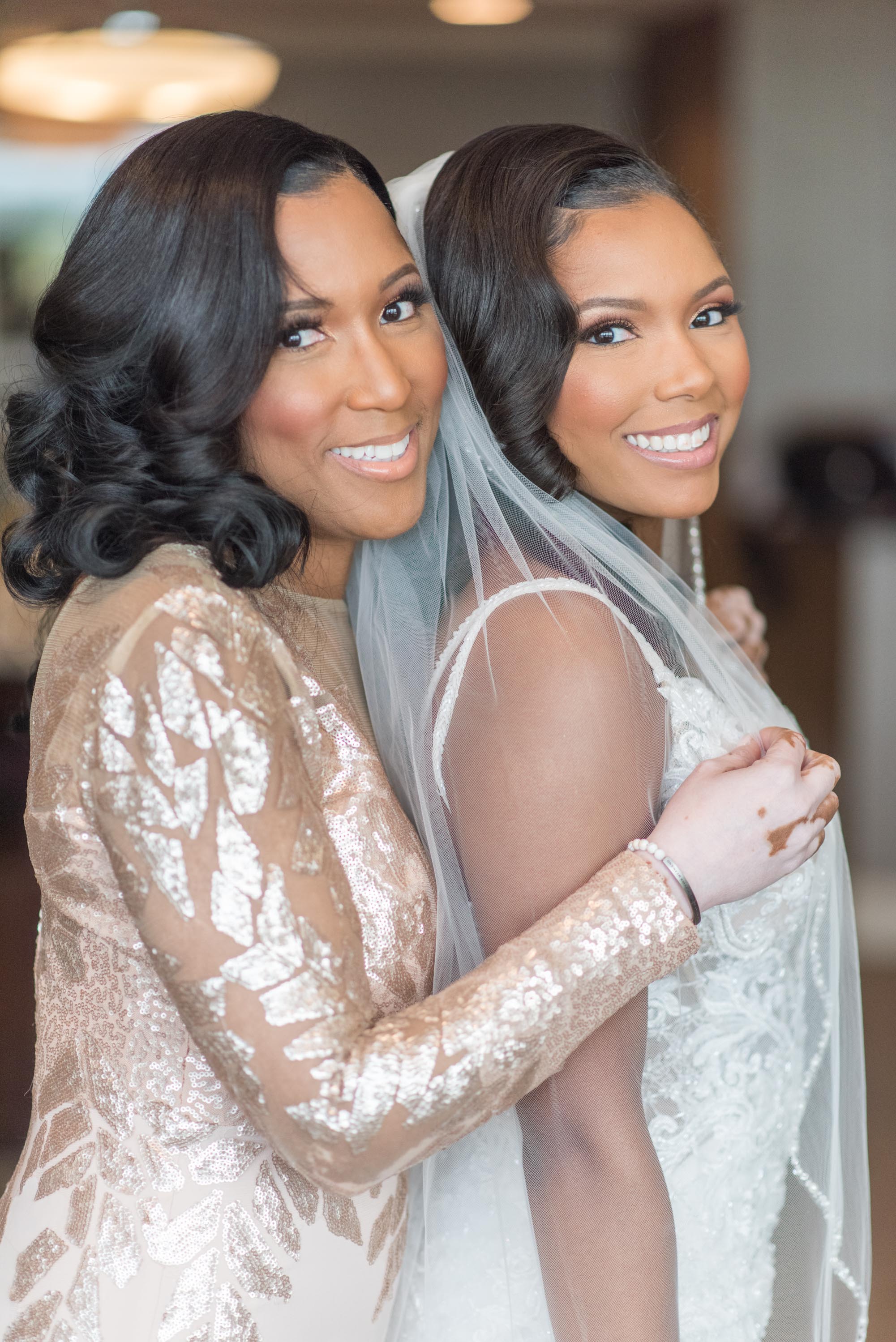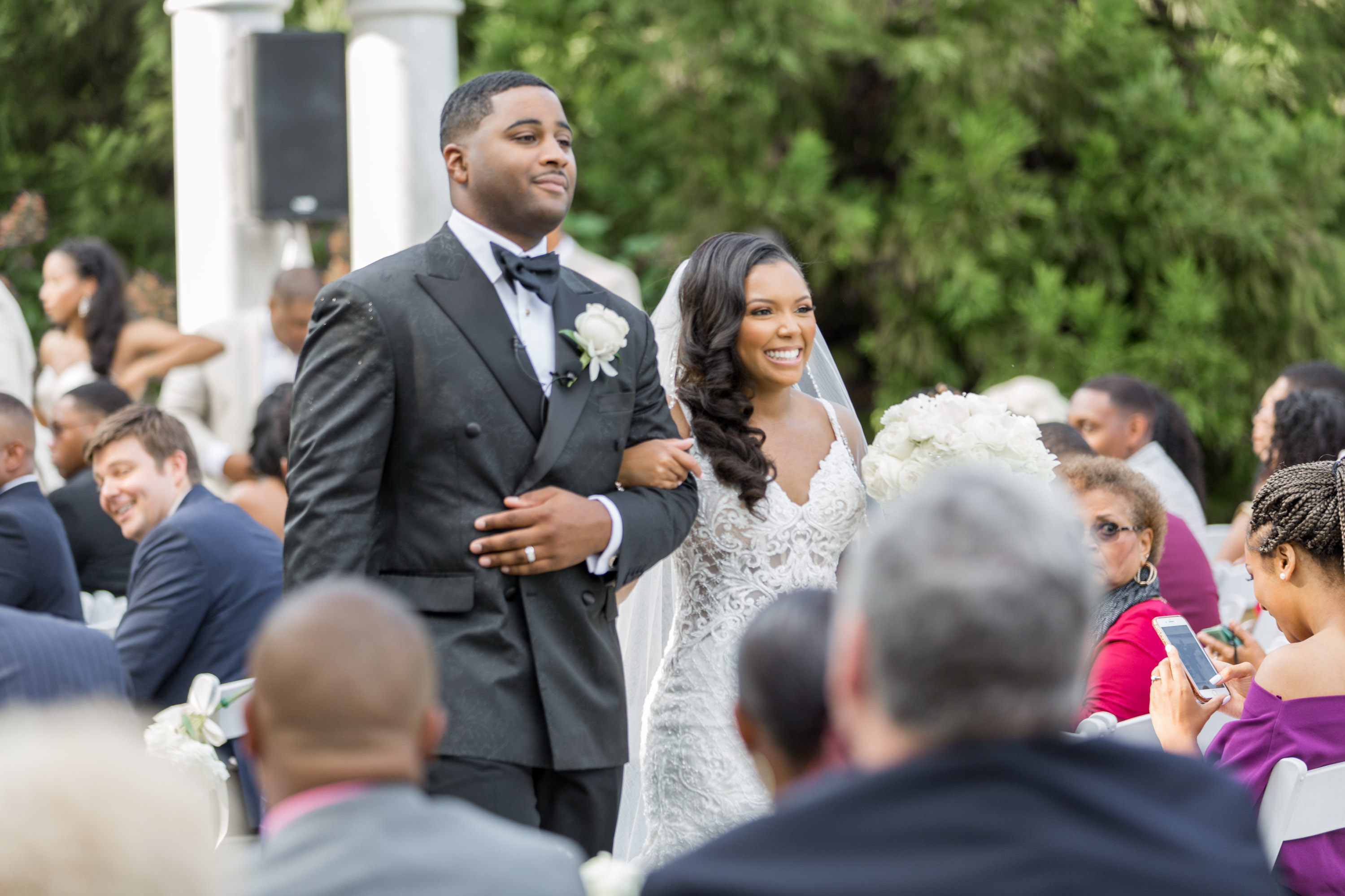 This past Sunday, Kabria and James tied the knot at the beautiful venue in Claymont, Delaware known as The Waterfall. This venue boasts two large ballrooms, incredible blown glass chandeliers, elegant decor, and hosts a large outdoor garden area with fire and flaming waterfalls, floral gardens and an outdoor ceremony area. The words “grand” and “decandant” come to mind. Its that perfect location for those who wish to have the option of stunning indoor and outdoor photos. The best of both worlds! But the highlight of the day was, without doubt, Kabria! The combination of her room-brightening smile, sweet disposition, and the breath-taking trumpet-styled wedding gown she wore lit up the room. You couldn’t help but notice the perfect marriage (pun intended!) of sophistication and down-to-earthness this couple, their family and friends, and decor and venue were. Simply stunning!